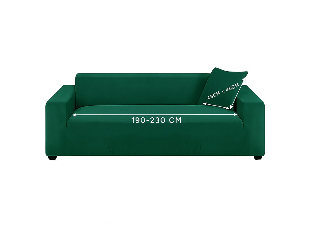 Napínací potah na pohovku – tmavě zelený elastický samet 190-230 cm