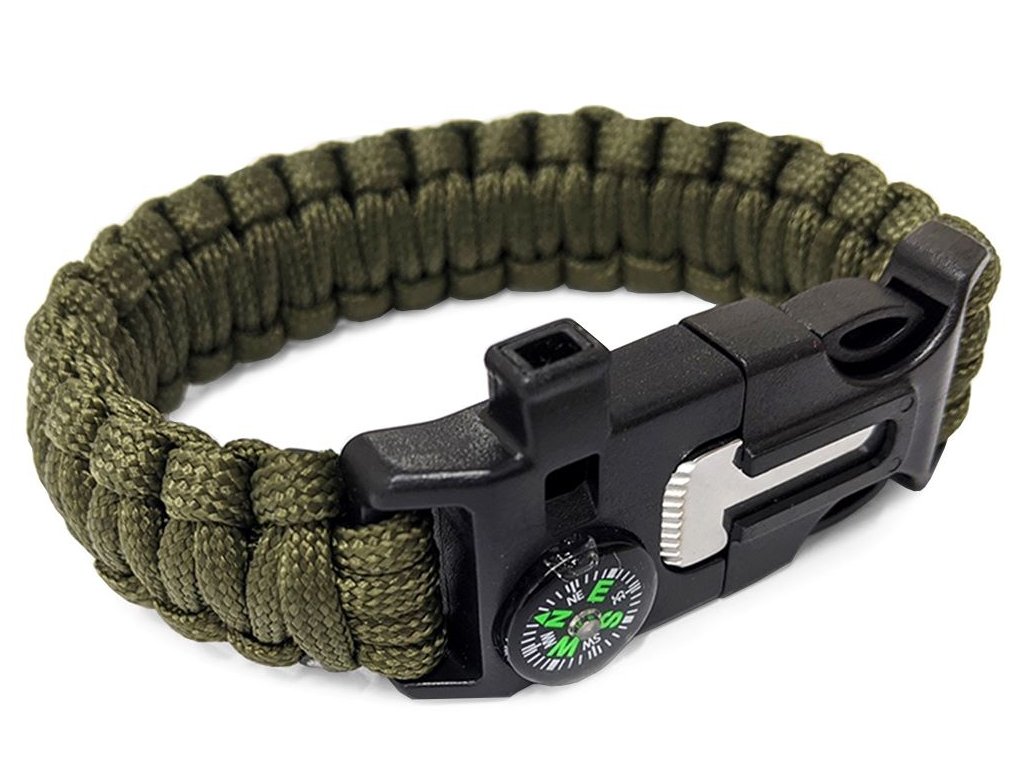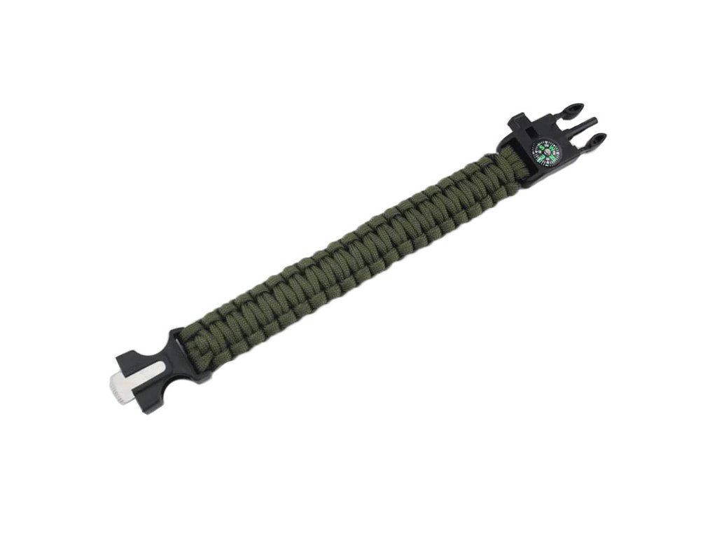 Náramek pro přežití, 5v1, kompas, podpalovač, nůž, paracord, zelená