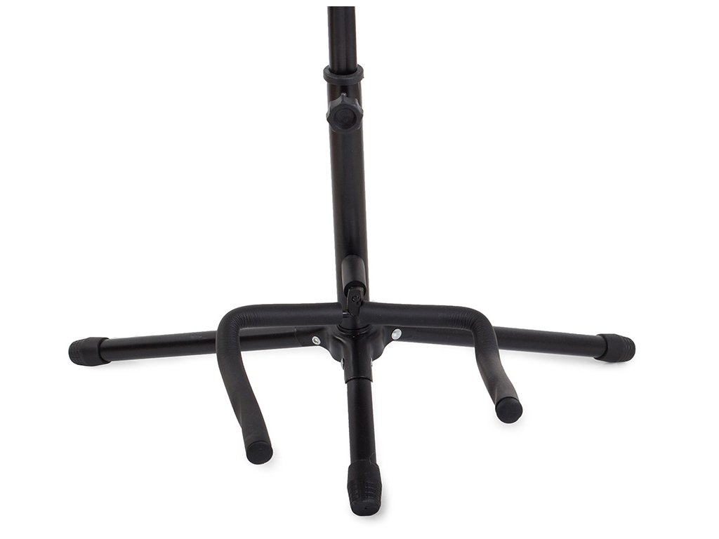 Stojan je vhodný pro klasickou, akustickou, elektrickou a basovou kytaru. Lehký a pohodlný s bezpečnostní pojistkou pro krk. Je výškově nastavitelný od 82 cm do 71 cm, aby vyhovoval různým výškám kytar.