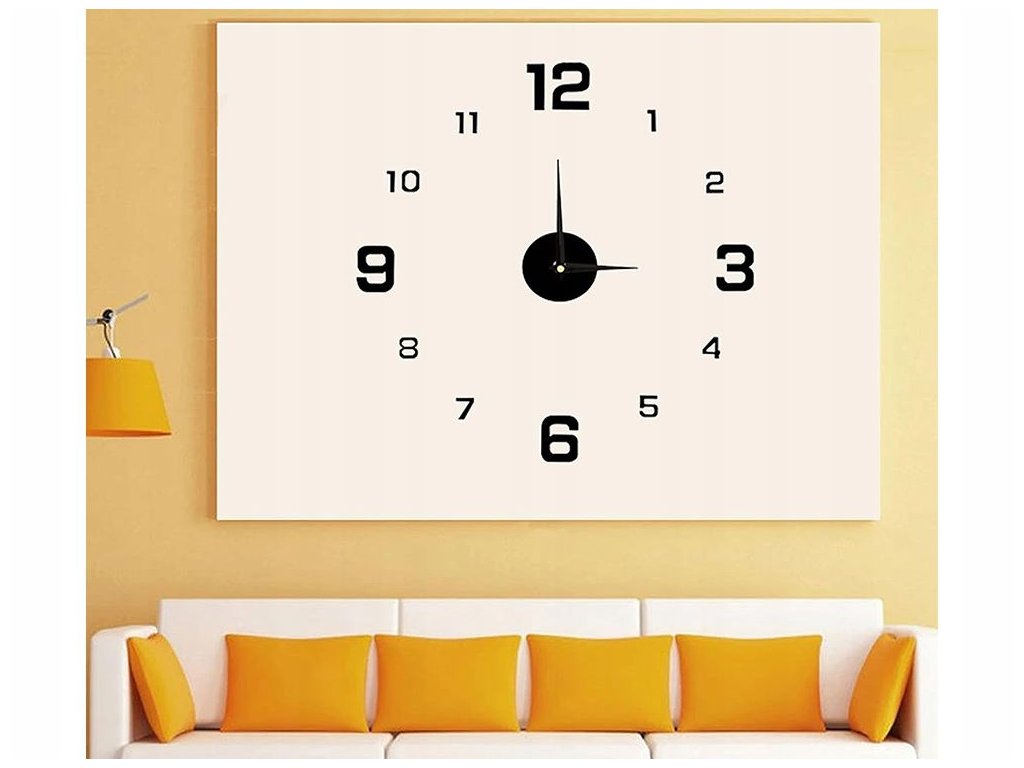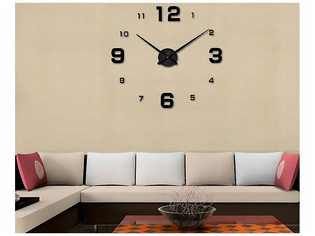Nástěnné hodiny 3D, nalepovací nástěnné hodiny, 130cm, tiché, černé