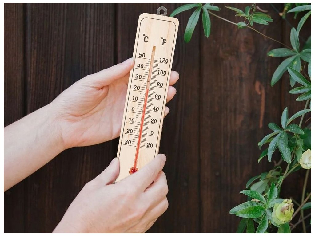 Nástěnný teploměr ze dřeva, venkovní teploměr