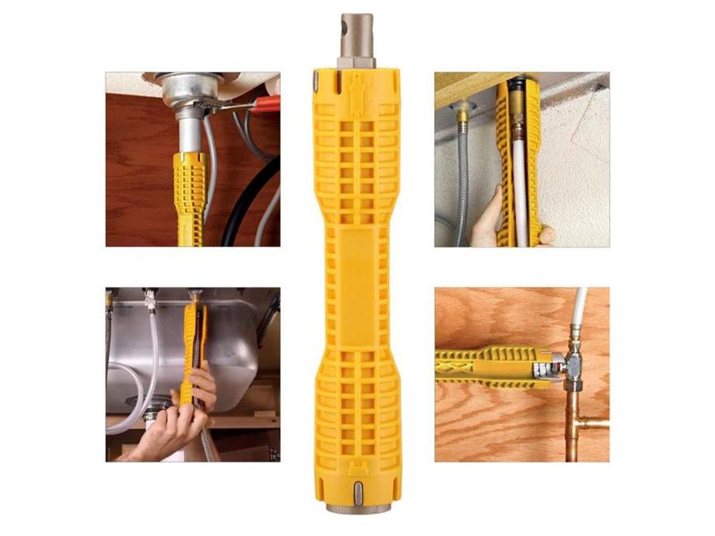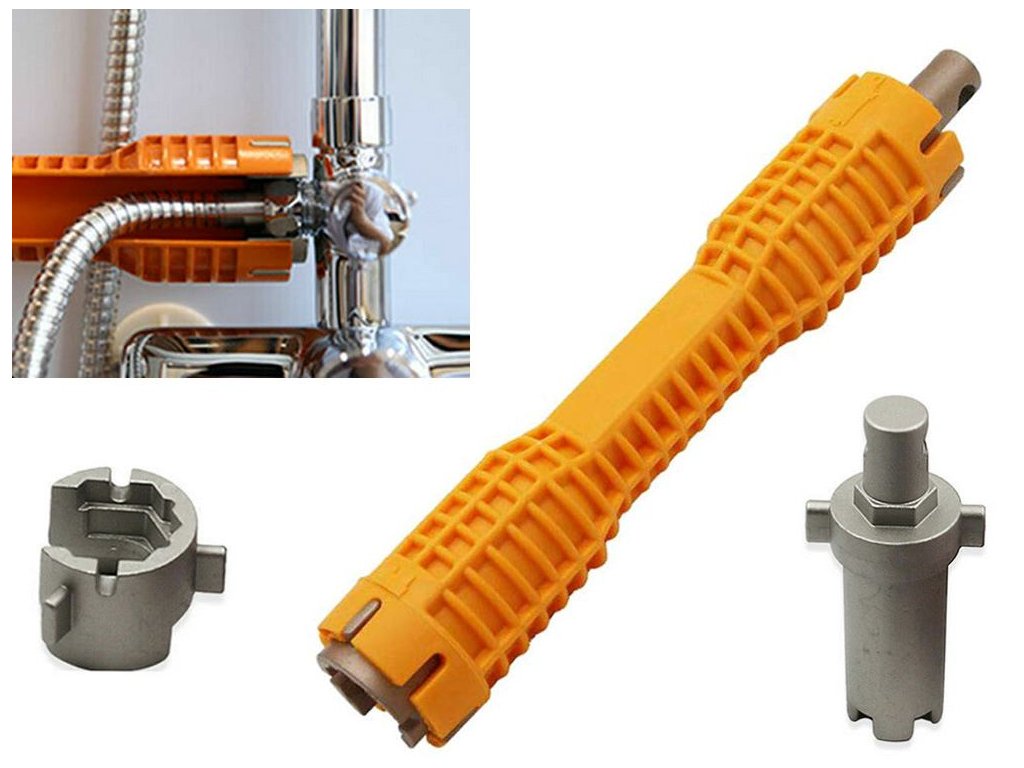 Univerzální klíč na sanitární instalace, usnadňuje montáž a demontáž dřezů, umyvadel, vodovodních baterií, ohřívačů vody atd.