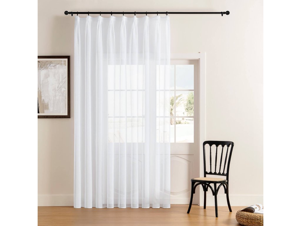 Záclona je opatřena 6cm univerzální řasící páskou, která umožňuje snadné zavěšení na žabky nebo háčky. Moderní hladký design bez vzoru ladí s jakýmkoliv stylem interiéru – od skandinávského po minimalistický. Díky svým rozměrům (šířka 300 cm, výška 270 cm) poskytuje dostatečné pokrytí a elegantní nařasení.