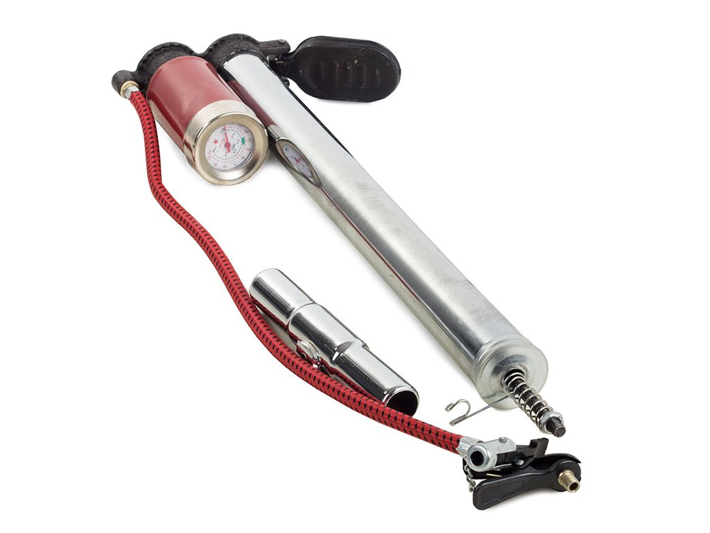 Nožní tlakové čerpadlo, kovová pumpa s manometrem
