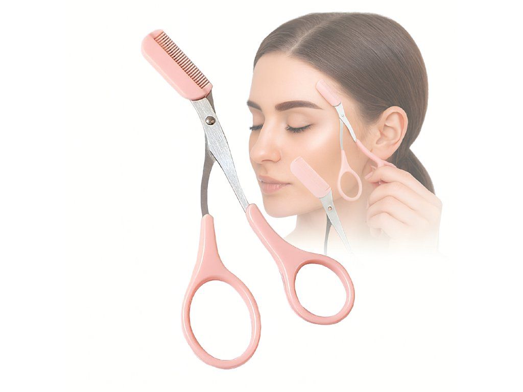 ✂️ Přesné nůžky s hřebenem – ideální pro úpravu a tvarování obočí✂️