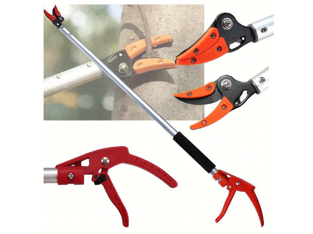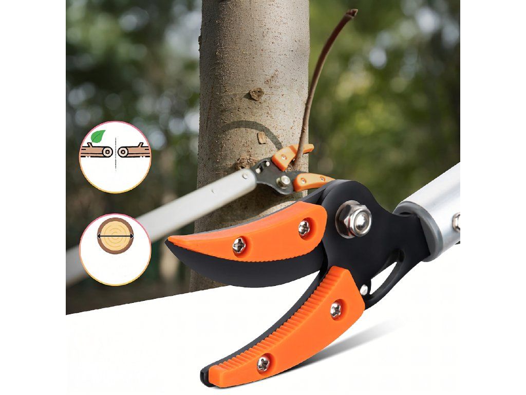 ✂️ Pečujte o svou zahradu jako profesionál! Tyto lehké a odolné nůžky na stříhání větví o délce 100 cm vám usnadní stříhání vysokých větví a sběr ovoce bez žebříku.