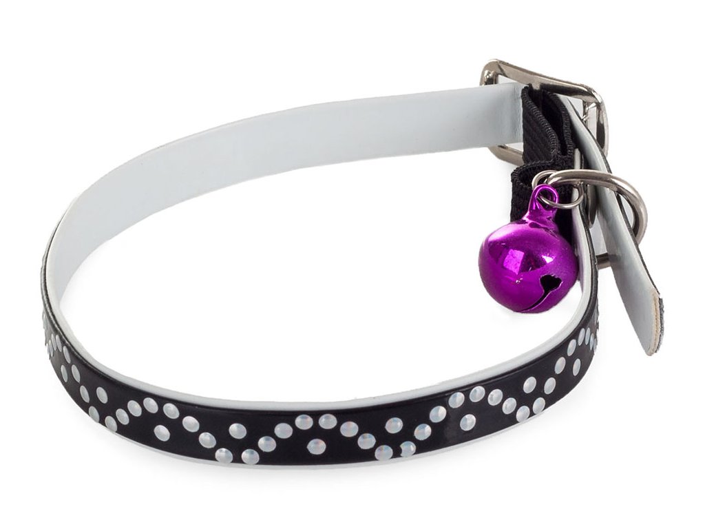 Upevňuje se plastovou sponou, která umožňuje rychlé a snadné nasazení nebo sundání z krku vašeho mazlíčka. Obojek má navíc připevněný zvonek.