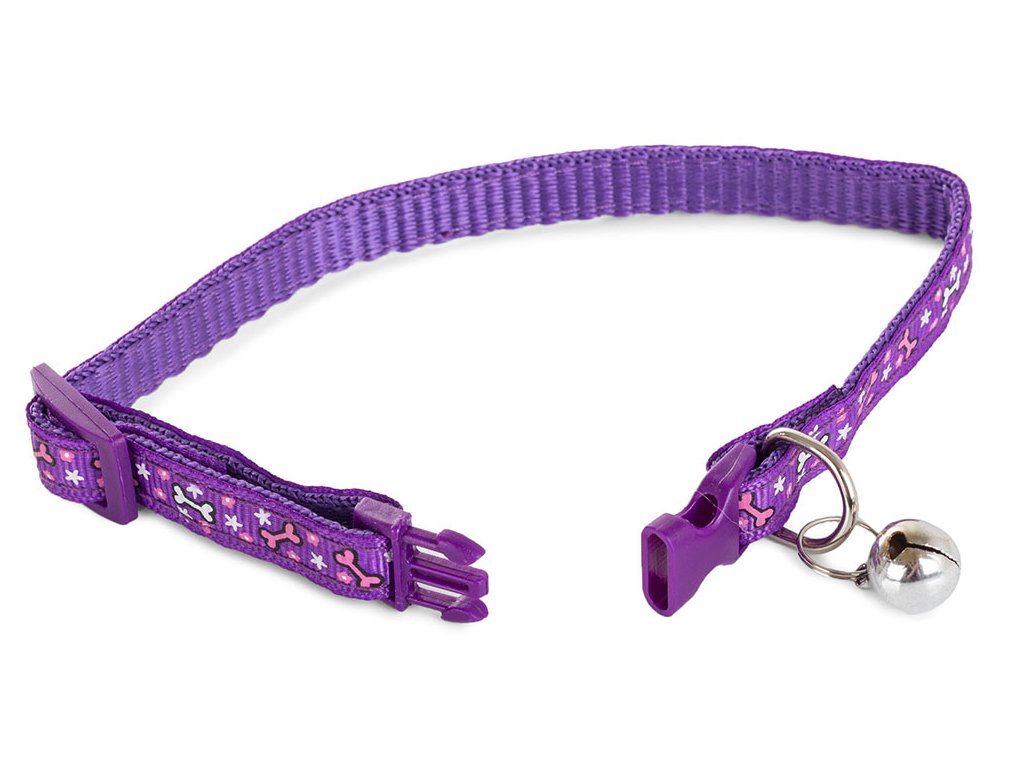 Upevňuje se plastovou sponou, která umožňuje rychlé a snadné nasazení nebo sundání z krku vašeho mazlíčka. Obojek má navíc připevněný zvonek.