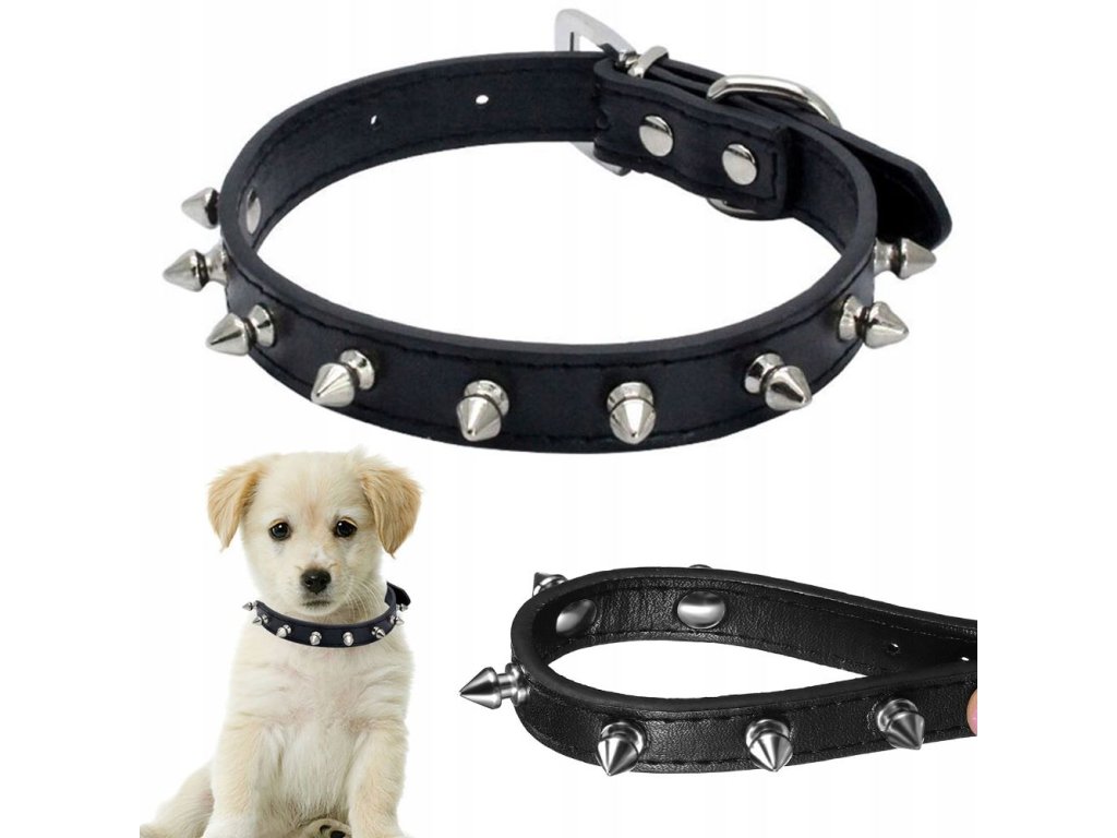 Obojek pro psy s cvočky z ekokůže, nastavitelný, vel. S