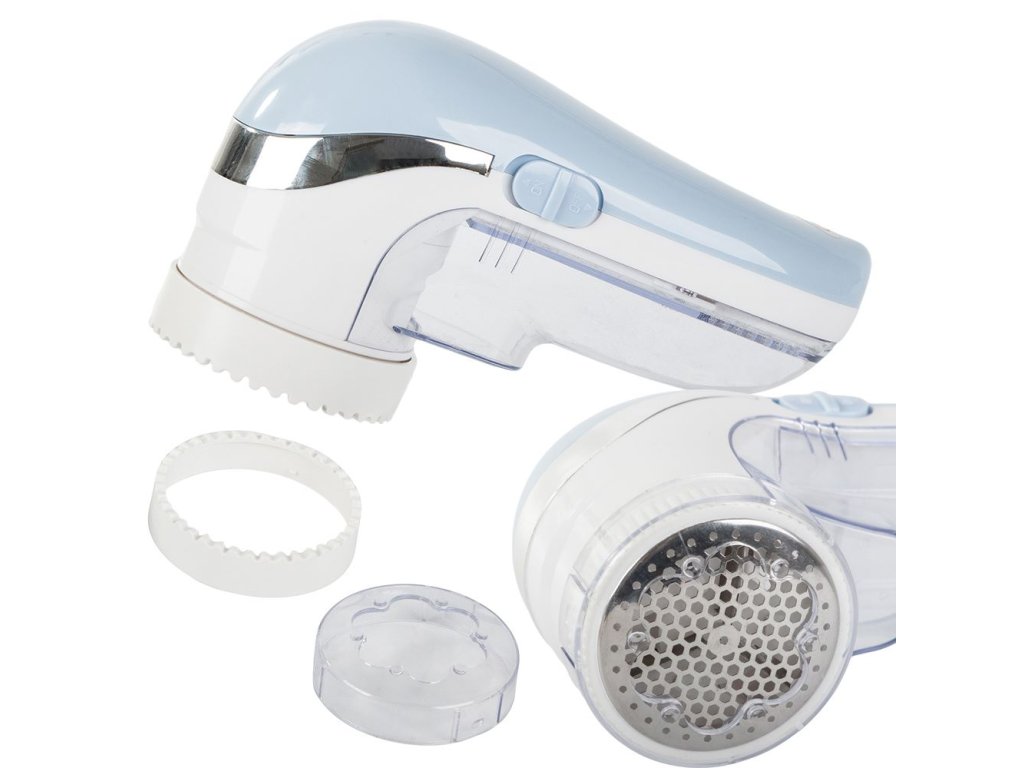 Zařízení má 3 čepele, které se otáčejí pod krytem a nádobu na chmýří, která se snadno a rychle odšroubuje.