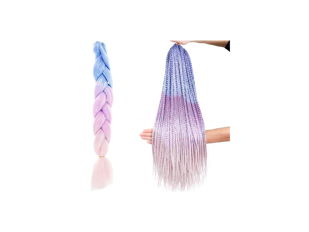 SYNTETICKÉ VLASY OMBRE NÁMOŘNICKÁ MODRÁ + FIALOVÁ - RŮŽOVÁ