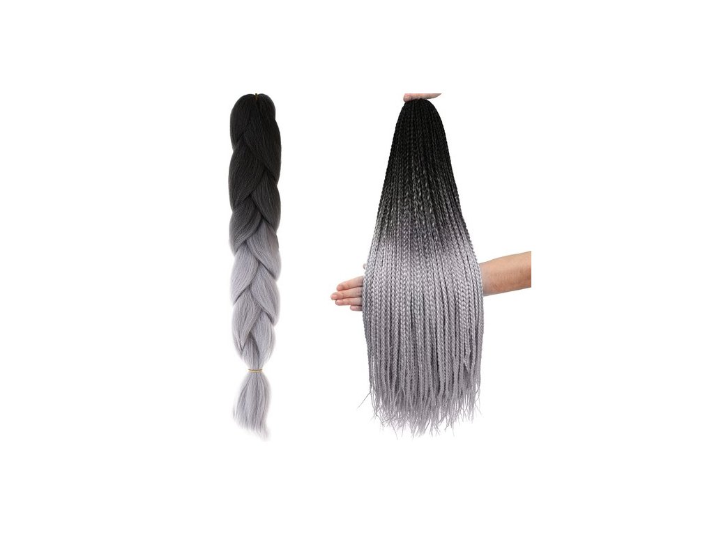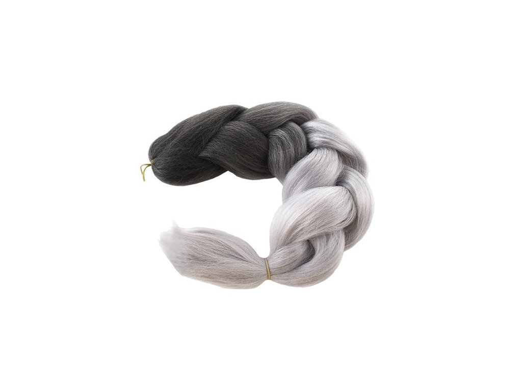 Ombré syntetické vlasy do copánků - šedá/černá
