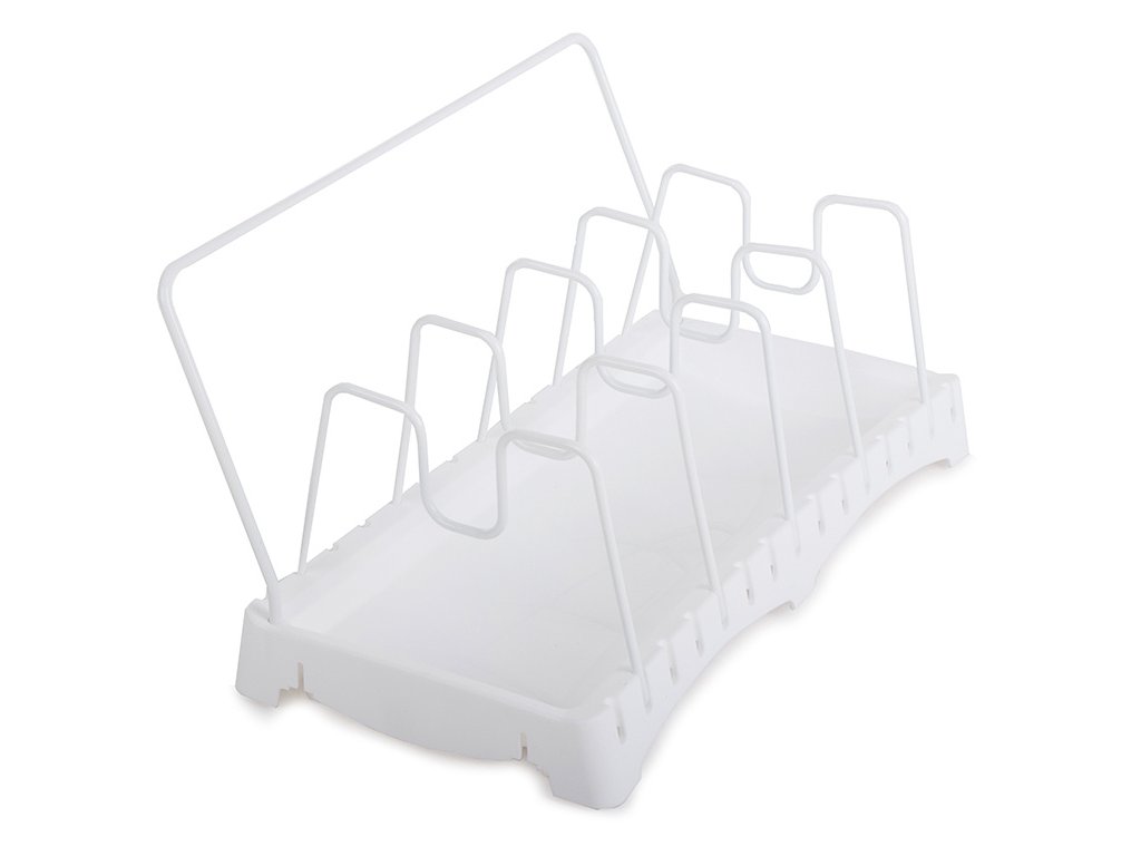 Organizér vám umožní uspořádat různé kuchyňské doplňky, jako jsou: poklice na hrnce, pánve, hrnce, prkénka, plechy na pečení atd. Stojan je vybaven odkapávačem, díky kterému mohou kuchyňské doplňky po umytí volně schnout před uložením do skříně.