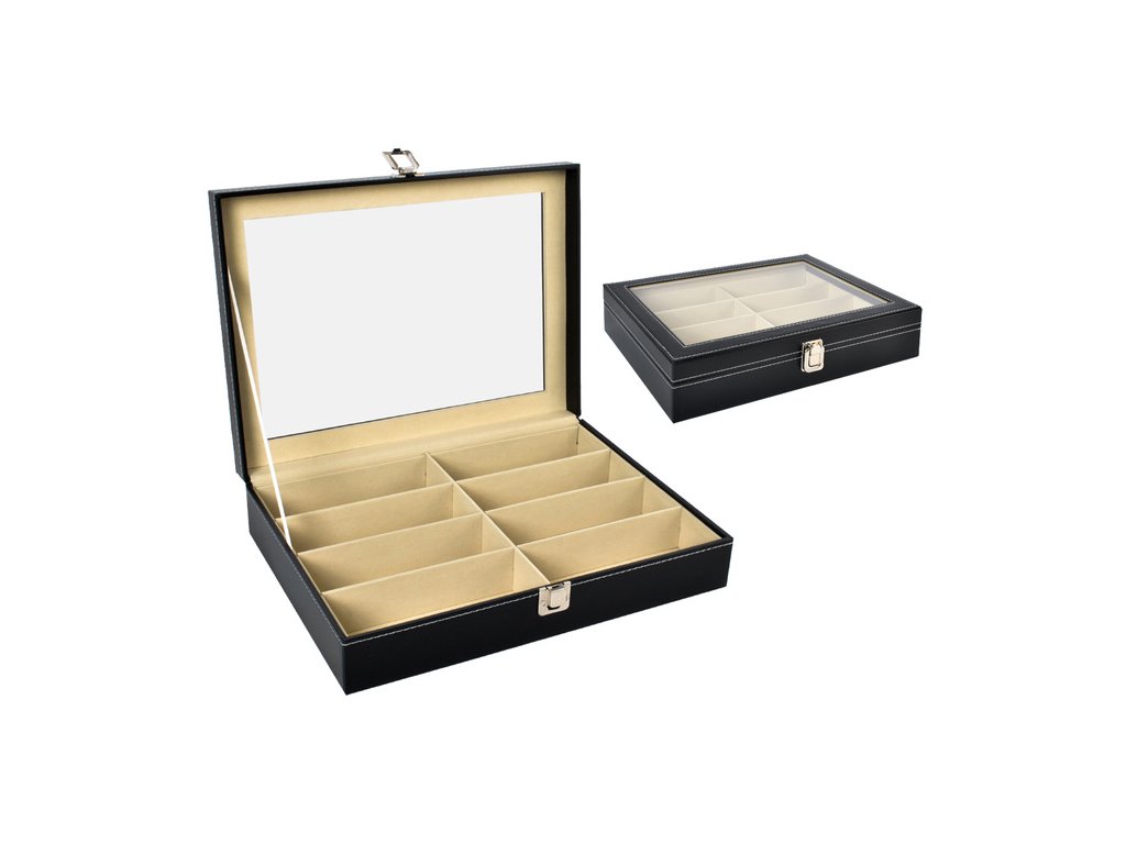 - BEZPEČNÉ UVNITŘ – vnitřek organizéru je vystlaný měkkým materiálem, uložené brýle jsou chráněny před poškrábáním. Přihrádky jsou odděleny vyššími stěnami, které chrání uložené sklenice před nežádoucím kontaktem, který by mohl vést k jejich poškození.