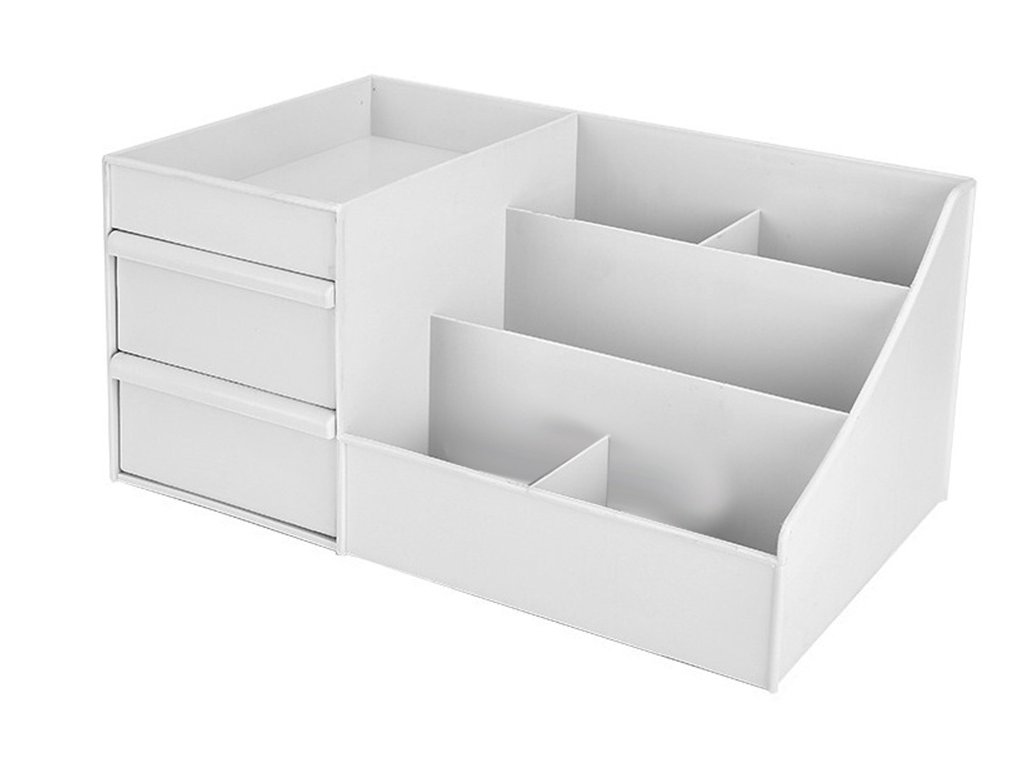 Organizér má 2 zásuvky, do kterých lze uložit například rtěnky, oční stíny a další ploché předměty.