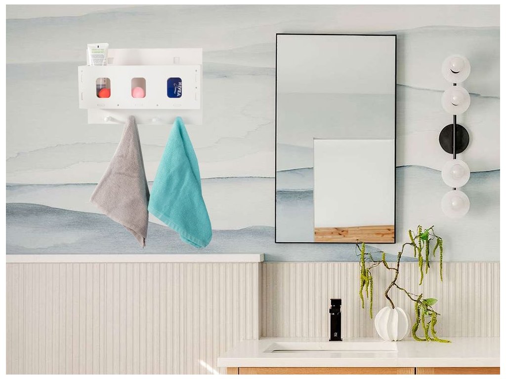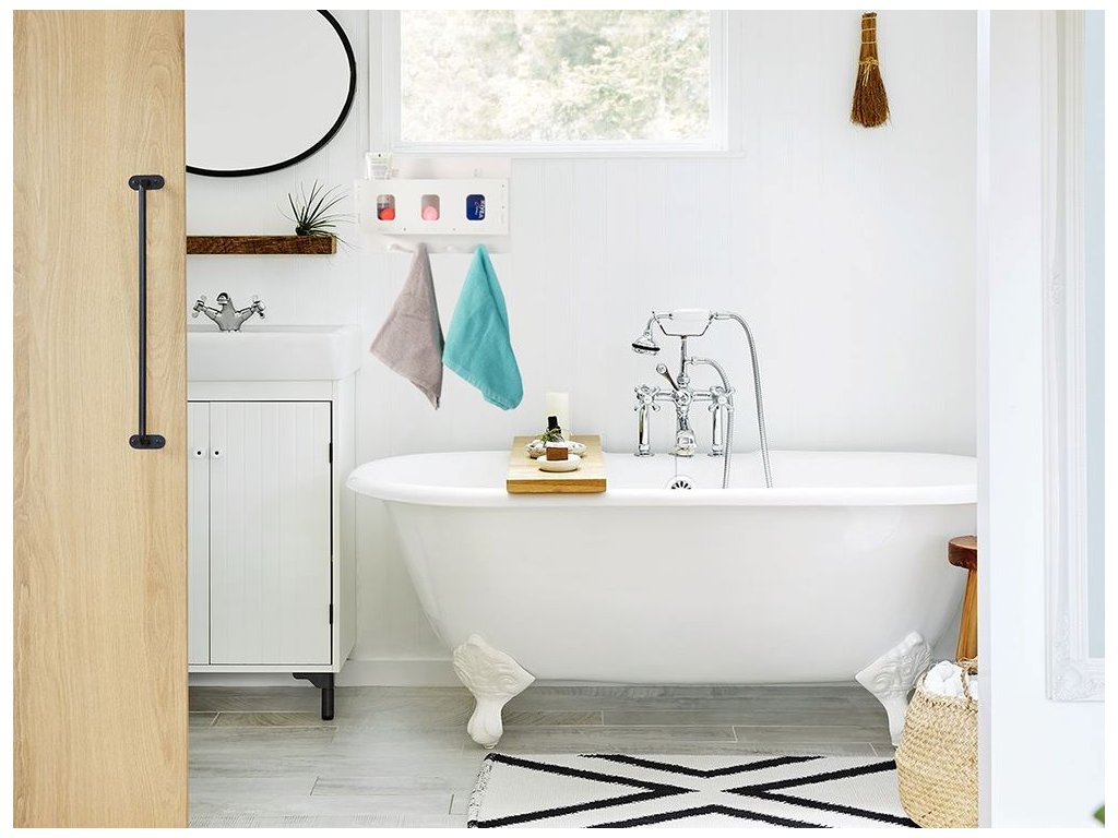 Můžete tam uložit potřebné, lehké koupelnové doplňky a na háčky pověsit ručníky, žínky nebo hadříky.