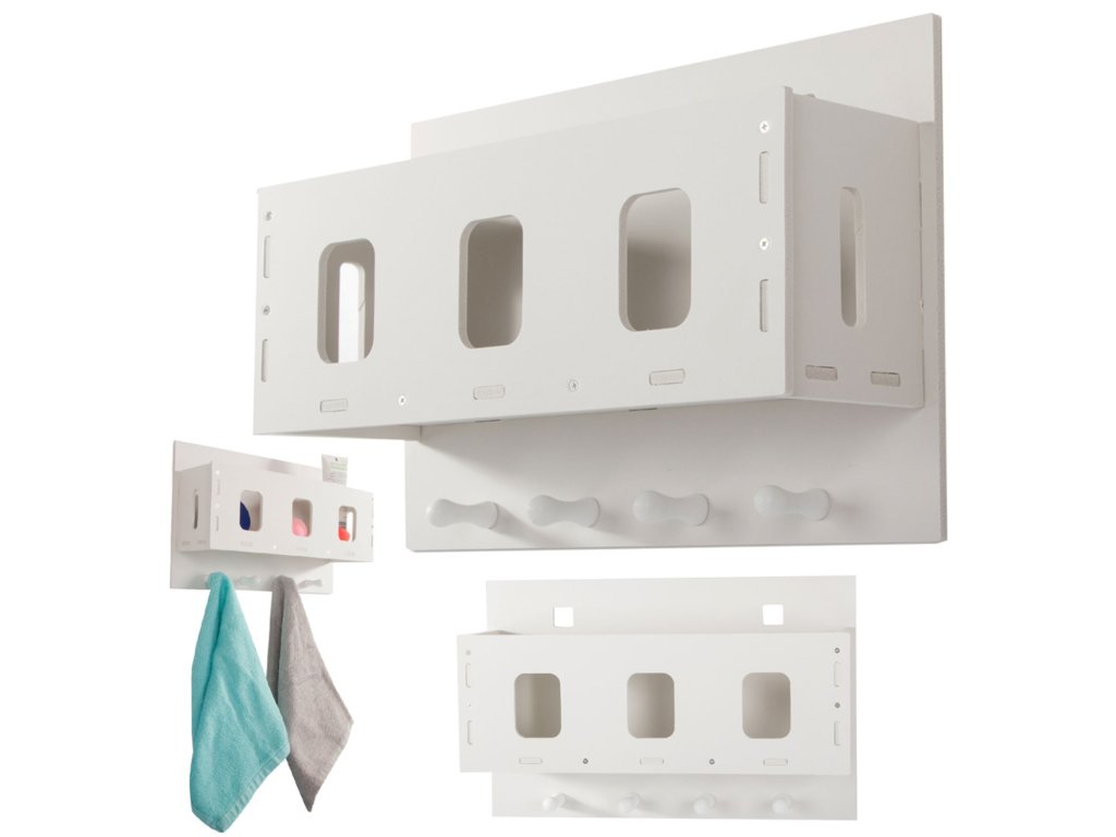 Organizér, závěsná polička s lehkou konstrukcí z plastu (lisovaná pěna) dobře poslouží v každé koupelně, kuchyni apod.