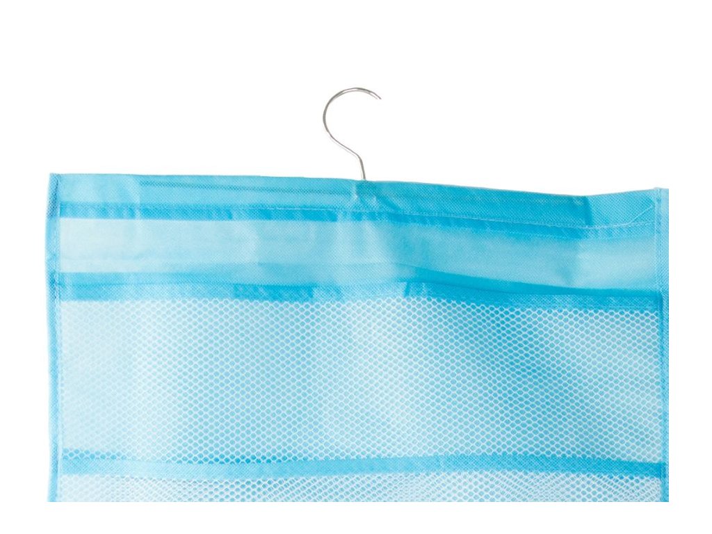 Organizér na prádlo, závěsný, oboustranný věšák s 22 kapsami, modrý