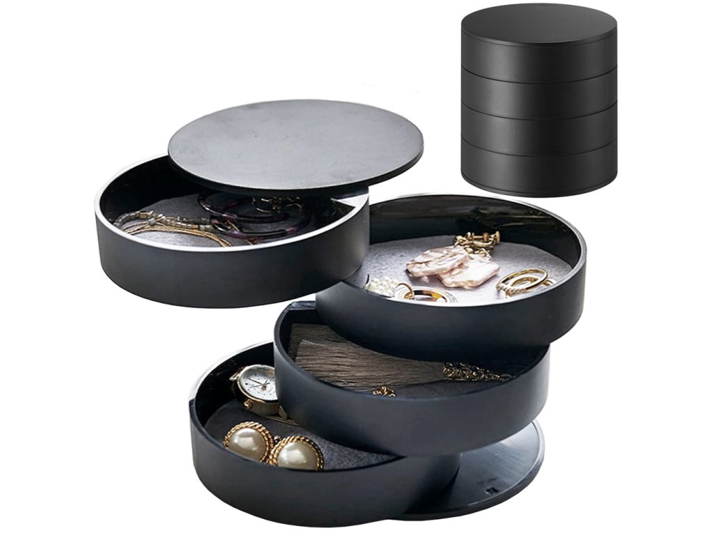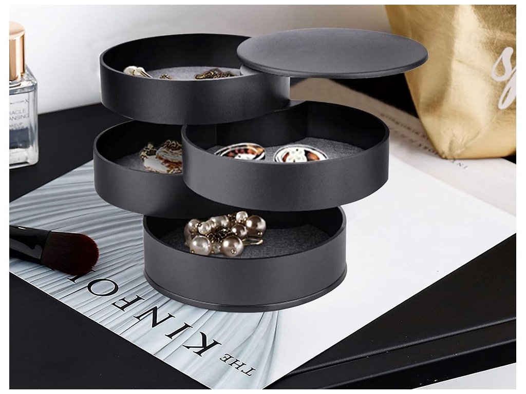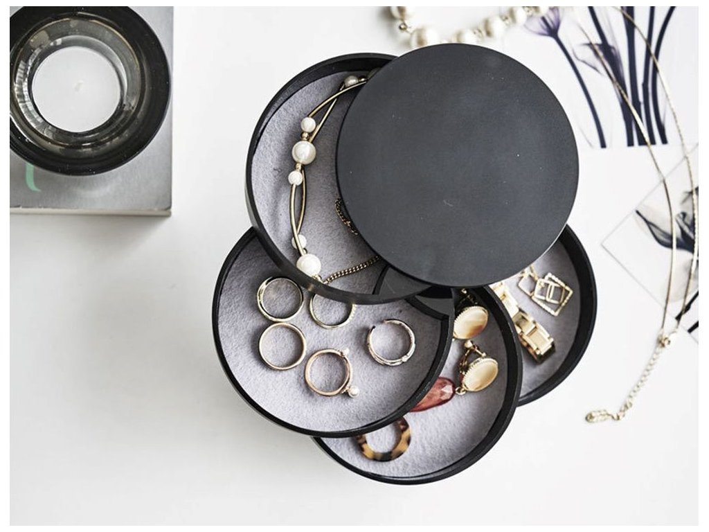 Organizér na šperky, kulatý, výsuvný box, černý
