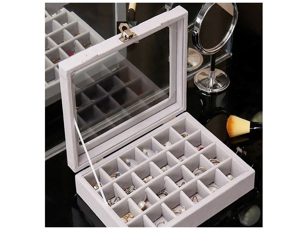 Velmi prostorná schránka, která vám umožní uspořádat vaše šperky. Organizér je vybaven 24 přihrádkami, které úspěšně pojmou velké množství prstenů, řetízků, náušnic, náramků atd.