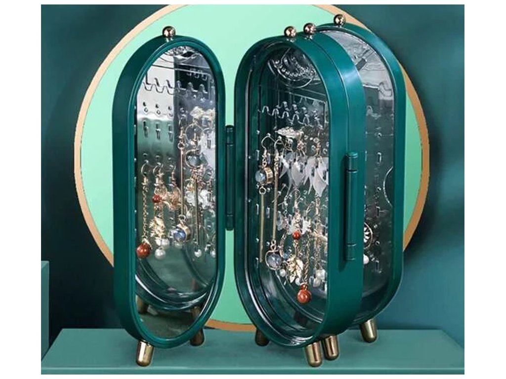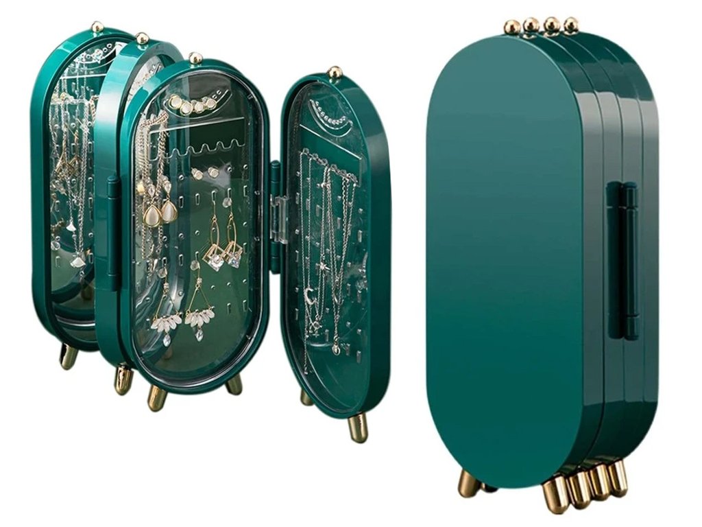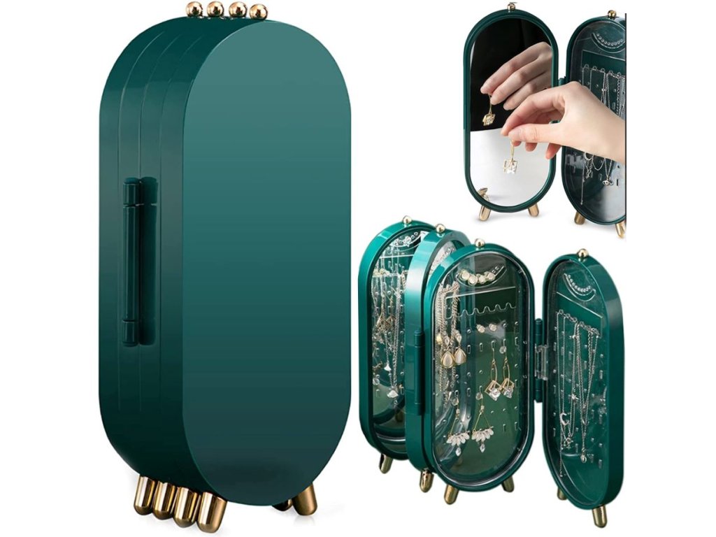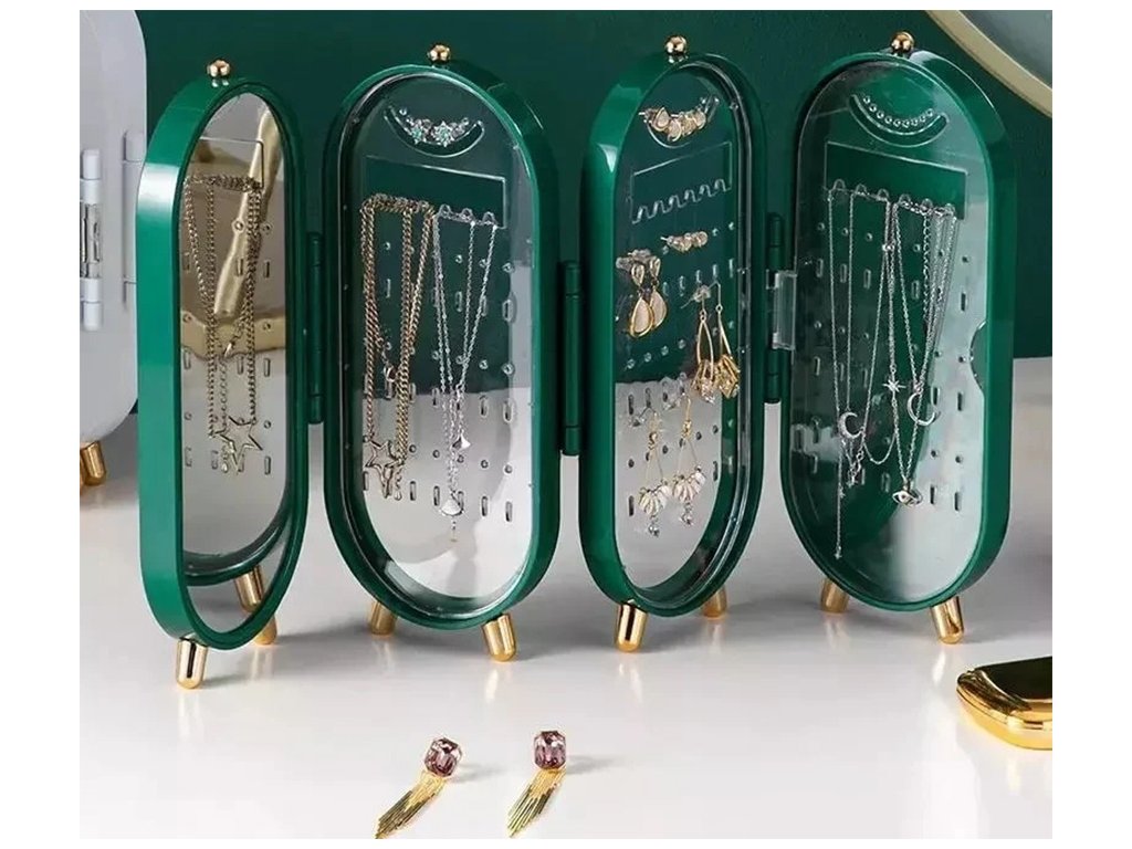 Organizér na šperky, skládací organizér na šperky se zrcadlem - zelená