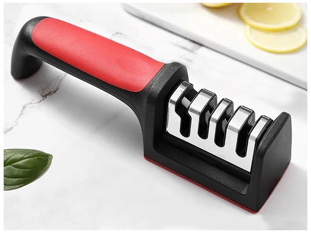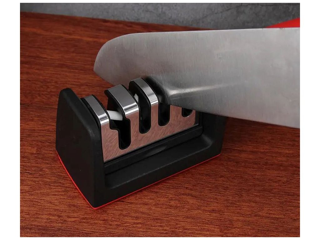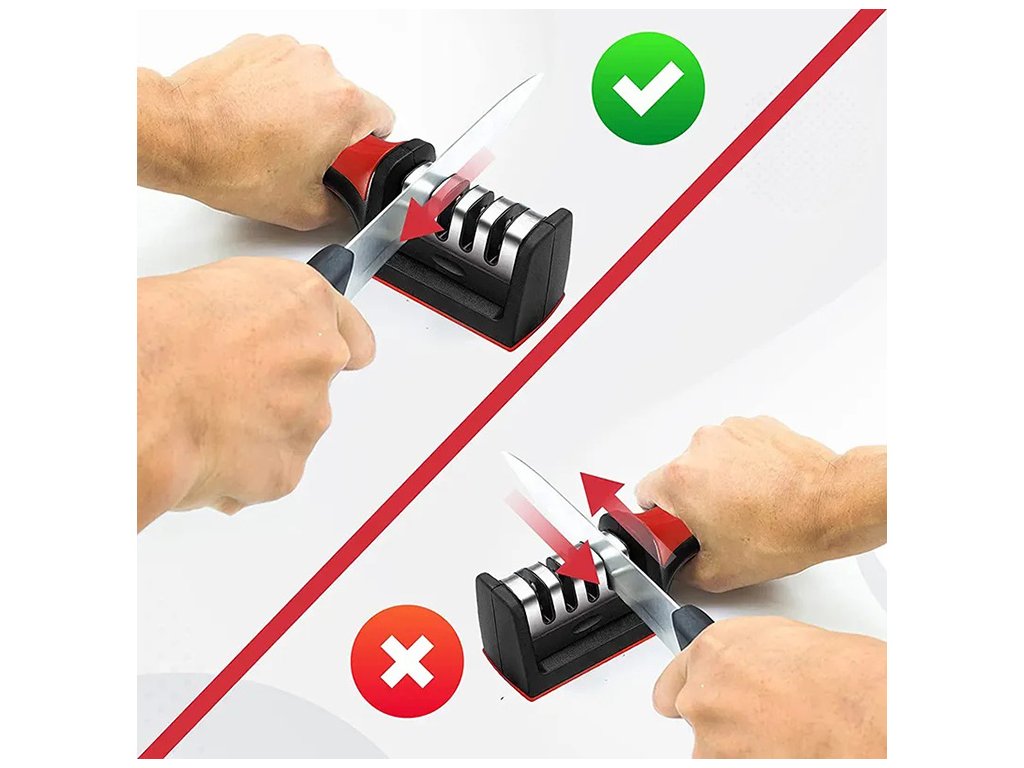 Máte tupé nože? Tento brousek se vám doma jistě bude hodit. Díky třífázovému brousku můžete své nože přesně nabrousit a obnovit. Jeho použití je snadné, účinné a bezpečné. Použitý mechanismus a správné umístění kamenů zajišťují správný úhel ostření. Možnost broušení nůžek