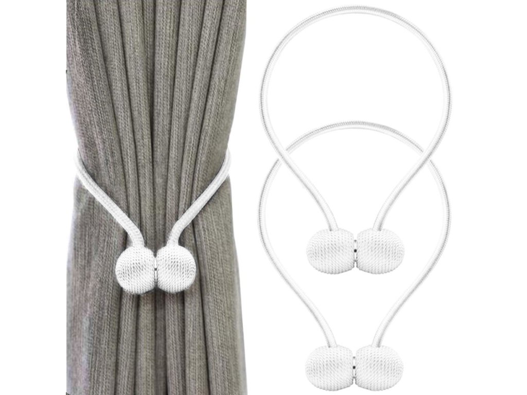 Ozdobné přezky, spony na záclony, se silným magnetem, 2 ks - bílá