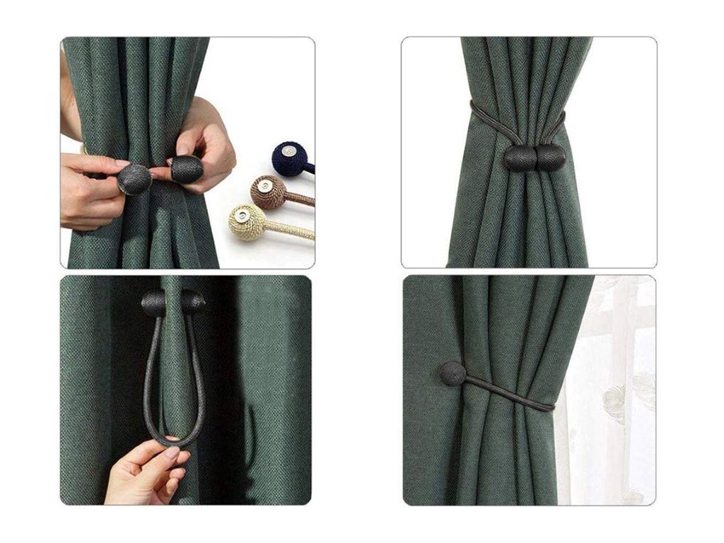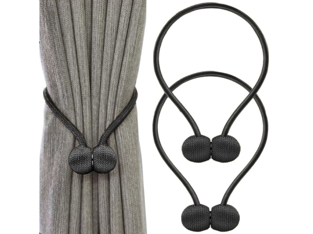 Ozdobné přezky, spony na záclony, se silným magnetem, 2 ks - černá
