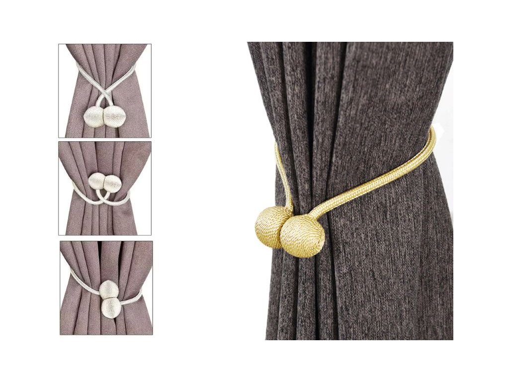 Ozdobné přezky, spony na záclony, se silným magnetem, 2 ks - zlatá