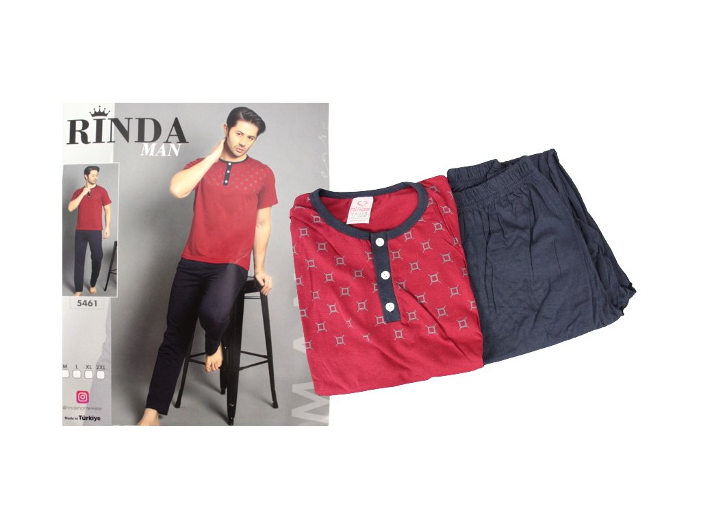 Pánské pyžamo RINDA dlouhé kalhoty a košile s krátkými rukávy a 3 knoflíky NO:5461 - 1 ksDoplňkové parametry