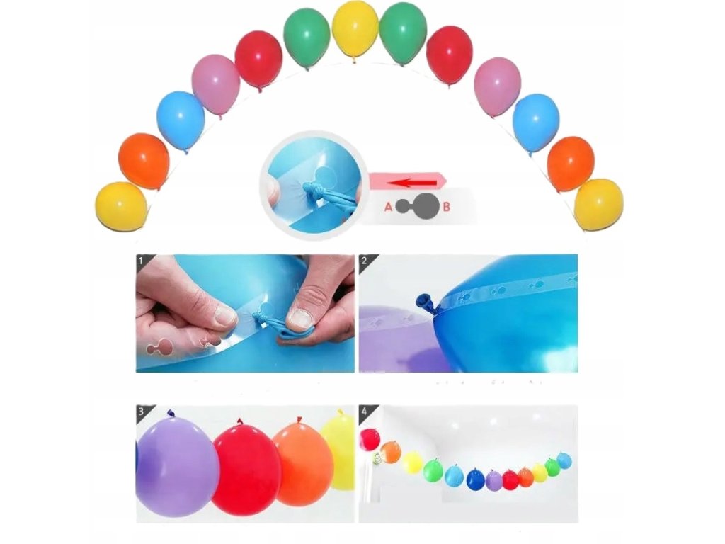 Páska na balónky 5 m je praktický pomocník, se kterým snadno vytvoříte balónkové girlandy, oblouky nebo závěsné dekorace pro jakoukoli příležitost – narozeniny, svatby, večírky i firemní akce.