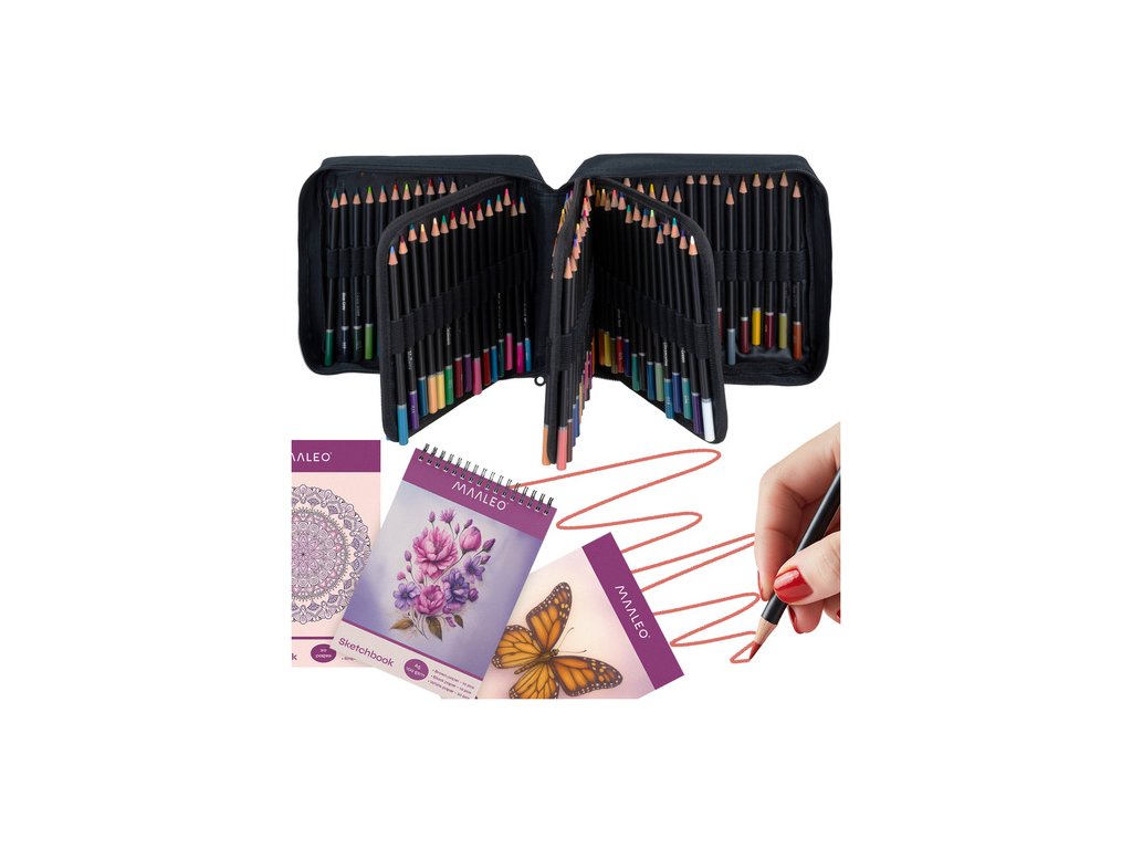 Art Set 120 barev - Pastelky na malování a vybarvování - Skicář + Kreslicí sešit + Přenosné pouzdro na zip - Ideální jako dárek