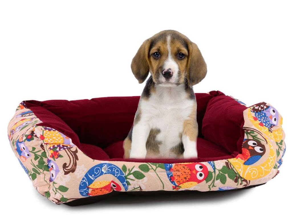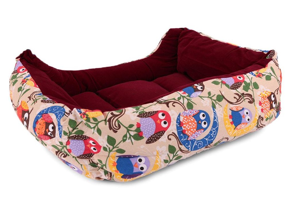 Pelíšek pro psy a kočky s polštářem, hnědý se sovičkami XL