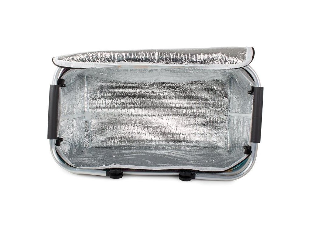 Vnitřek koše je vyložen termofólií , která výborně izoluje potraviny uvnitř. Horní část košíku se zapíná na zip.