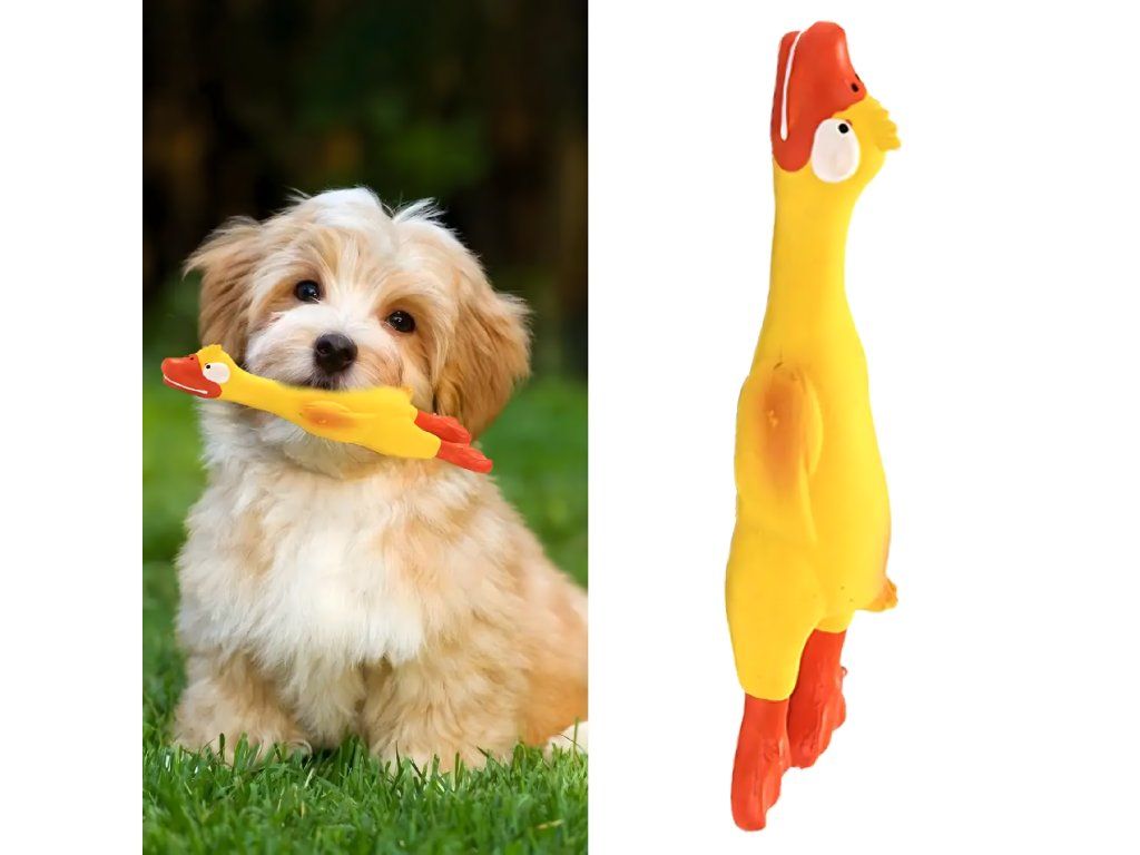 Pískací hračka gumové kuře velké pro psy a štěňata, žvýkací hračka 22 cm
