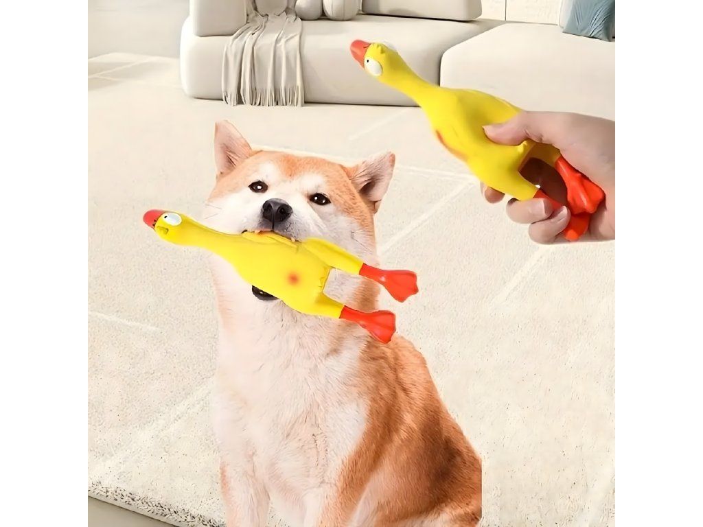Udělejte radost svému mazlíčkovi! Vyberte si pískajícího kuřátka o velikosti 22 cm a dopřejte psovi hodiny skvělé zábavy, kousání a tahání.