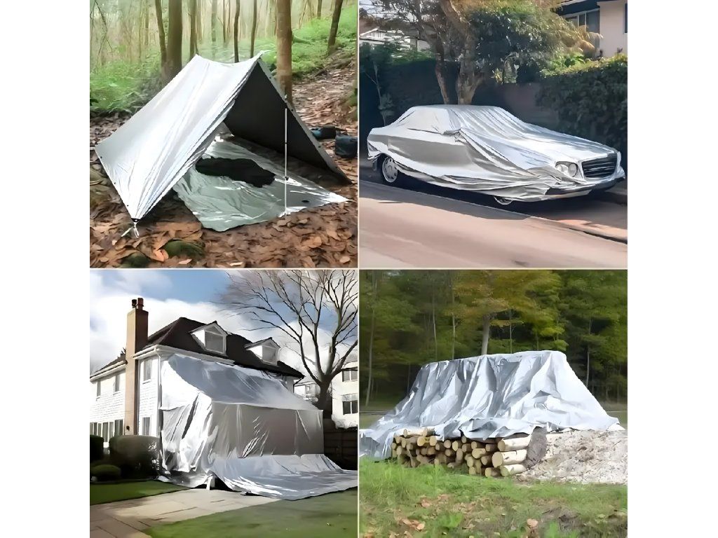 Jako dočasné zastřešení nebo ochrana předmětů venku.