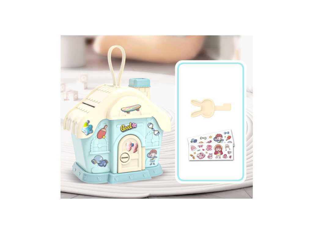 Plastová pokladnička DOMEK KRÓLICZKA s nálepkami 24x18x13 cm MODRÁDoplňkové parametry