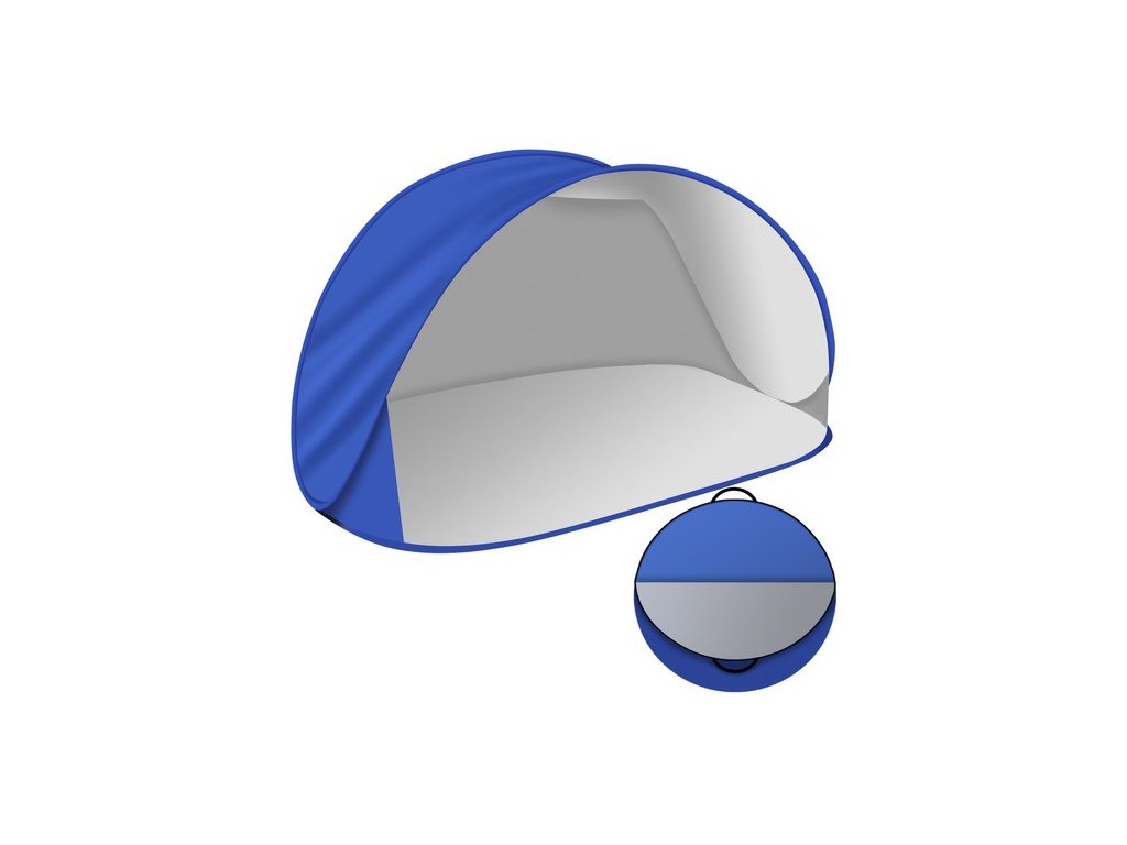 Plážový stan, polootevřený POP UP - chrání před větrem a nadměrným sluncem a zespodu před vlhkostí a pískem na pláži. Potah stanu poskytuje vynikající ochranu před škodlivým UV zářením.