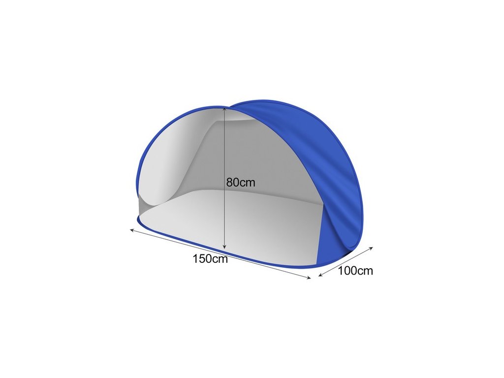 - SPECIFIKACE - UV ochrana: ano, 30+; ochrana proti dešti: 300 mm vodní sloupec; materiál: polyester; rám: sklolaminát; potah: polyester; ostatní: polypropylen + nylon + železo; rozměry složeného stanu: 60 x 60 x 2 cm; rozměry: 150 x 100 x 80 cm; hmotnost: 0,5 kg; hmotnost balení: 0,55 kg.