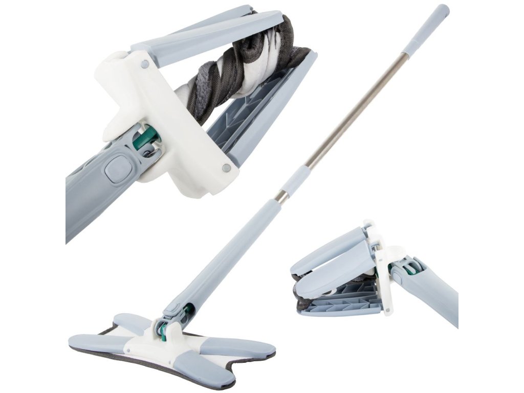 Plochý mop na čištění podlah s rotačním ždímačem, skládací mop
