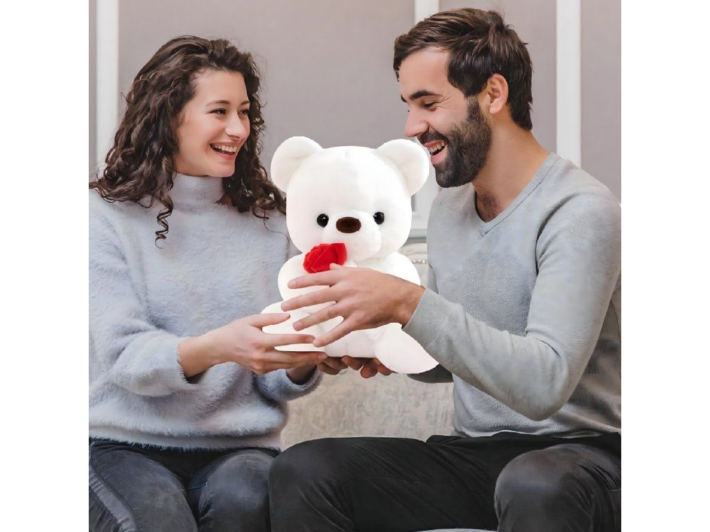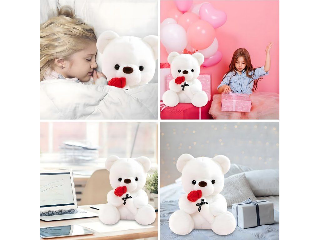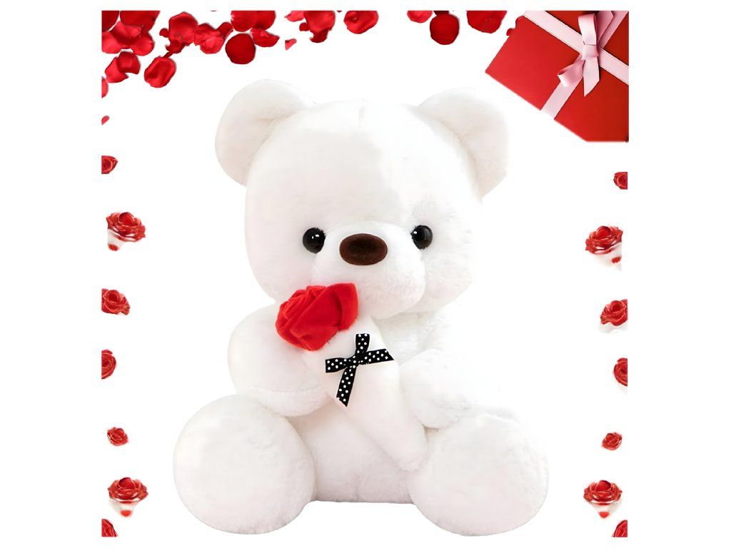 ❤️PLYŠOVÝ BÍLÝ MEDVÍDEK PRO DÍVKY 32 cm ČERVENÁ RŮŽE S MAŠLÍ DÁREK❤️
