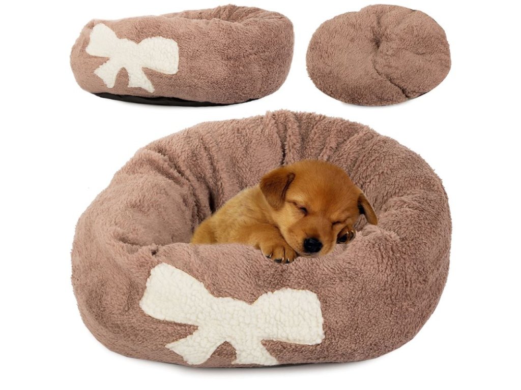 Plyšový pelíšek pro kočky s psy, měkký, 35 cm, hnědý