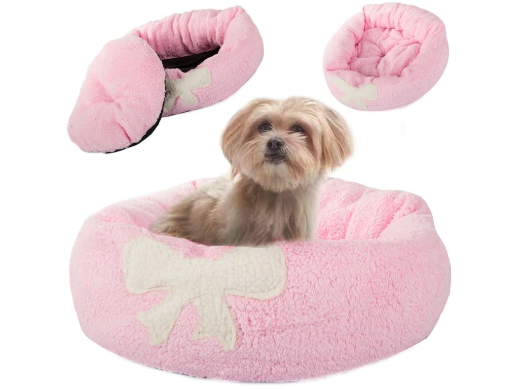 Pelíšek kruhového tvaru s měkkou výplní si zachovává svůj tvar a zajistí vašemu mazlíčkovi pohodlný spánek.