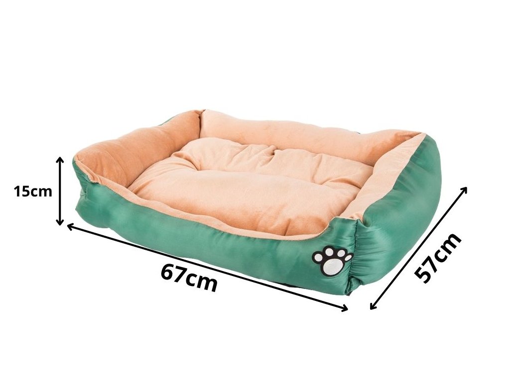 Plyšový pelíšek pro psy s polštářem, 67 cm x 57 cm x 15 cm - zelený