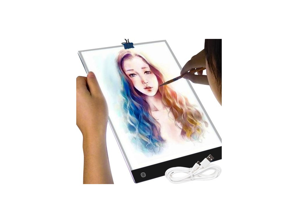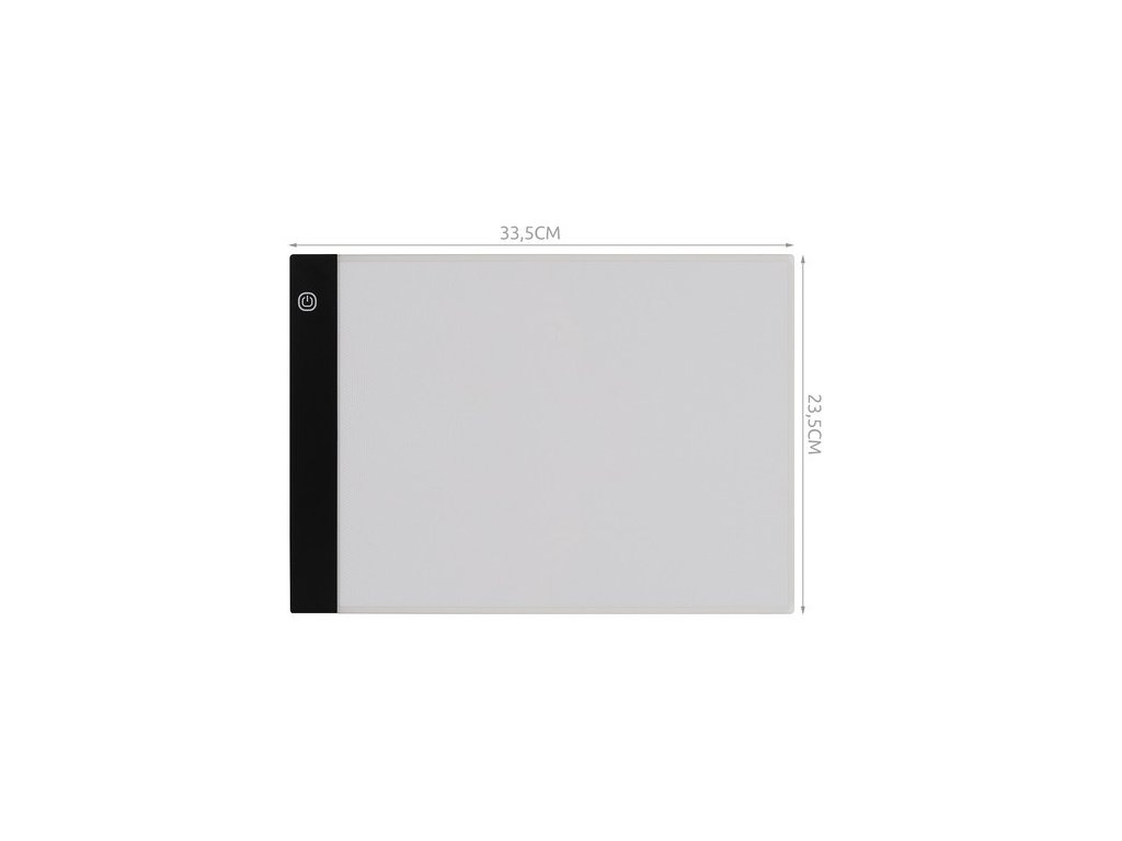Rýsovací deska je vyrobena z akrylu, je odolná a má dlouhou životnost. Rovnoměrné osvětlení na desce filtruje škodlivé paprsky a chrání oči před nepříznivým osvětlením. Desku můžeme používat mnoho hodin bez únavy zraku. Celá deska je důkladně osvětlena - kopírování výkresu je snadné, díky čemuž se na něm skvěle pracuje! Deska je napájena USB kabelem – můžeme ji připojit k počítači, notebooku, powerbance nebo napájecí zástrčce. Spotřebovává málo elektřiny, takže ho můžete vzít ven a používat s powerbankou. Je lehký, takže jeho přeprava není problém, snadno se vejde do tašky.