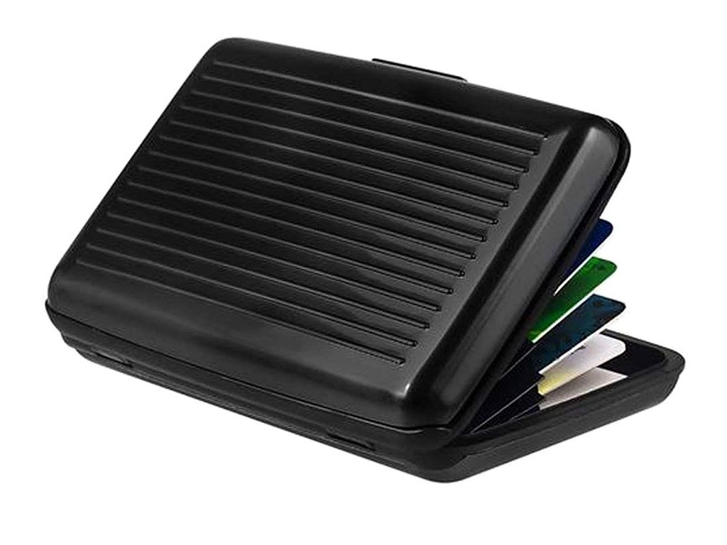 Pouzdro na doklady, hliníkové pouzdro se 6 přihrádkami - černé