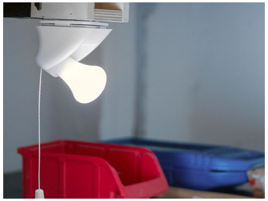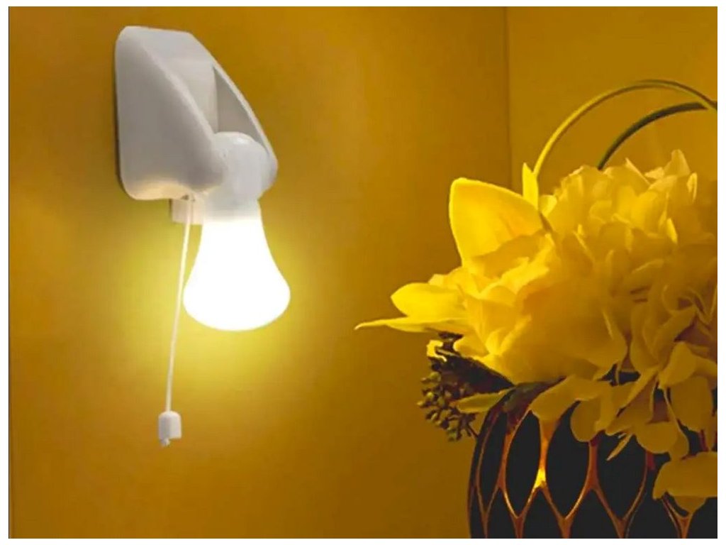 Zapíná se pomocí šňůrky připevněné k lampě - stačí zatáhnout.