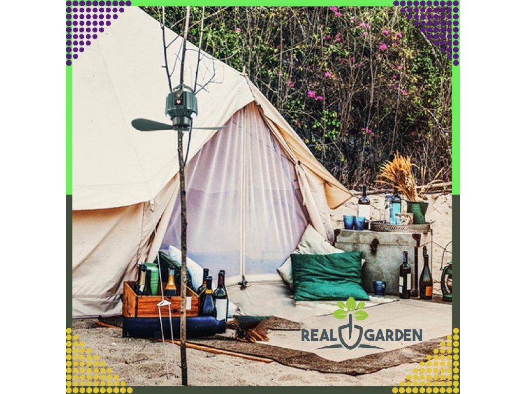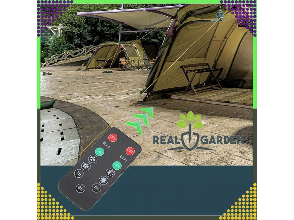 Ideální do stanů, zajišťuje příjemný chlad v horkých dnech a osvětlení v noci. Ventilátor lze zavěsit na strop stanu.