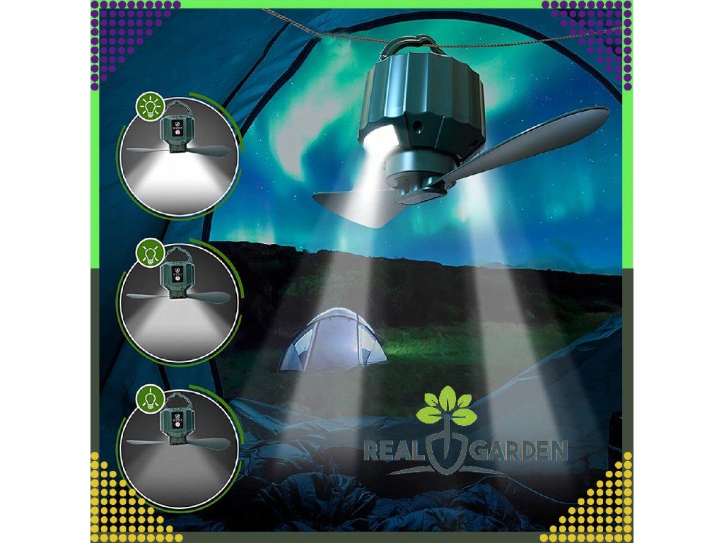 ⛺Přenosný stropní ventilátor 2 v 1 do stanu nebo ložnice na kempování, USB, 5200 mAh⛺